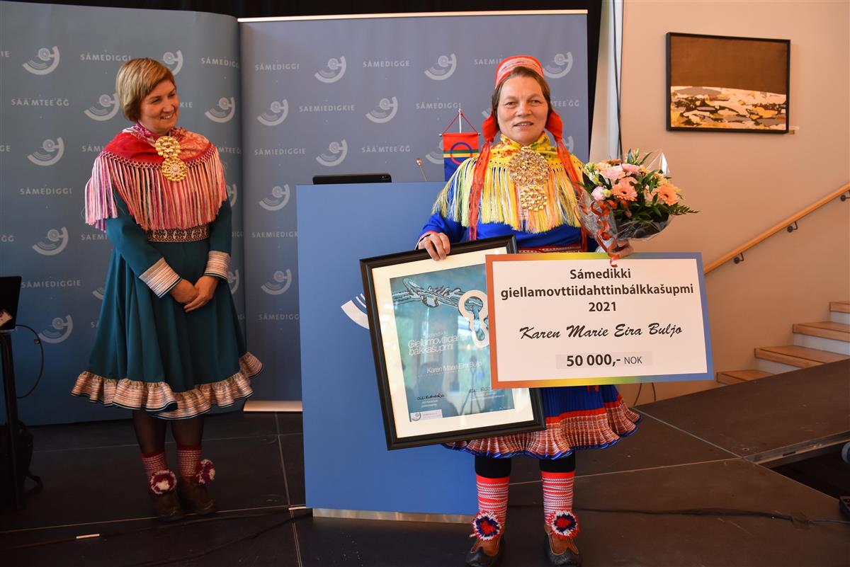 Njieljie eejhtegepaarrh, Lill-Tove jïh Oddmund Paulsen, Anne Kalstad Mikkelsen jïh Filip Mikkelsen, Solvår Knutsen Turi jïh Arne Johan Turi, jïh Adele Nystø Ráhka jïh Per Arne Ráhka Saemiedigkien voestes gïeleskreejremebaalhkam åadtjoejin. Dah saemien maanagïertem eelkin Divtasvuodnesne 1989 dan itjmies gïeleevtiedimmien gaavhtan. Eejhtegedåehkie buektiehti gïeleevtiedimmiem reaktoe otnjegasse vihth åadtjodh, jïh numhtie buektiehti julevsaemien gïelem vaarjelidh jïh eevtjedh.